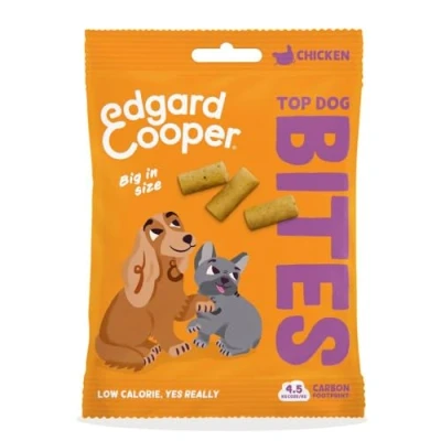Natural dog treats, packed with fresh chicken, these, bites are full of, protein Suitable for all adult senior dogs: small and large breeds, sterilised and active dogs Low calorie and grain free, ideal for guiltfree snacking and teaching your dog something new Full of essential vitamins and minerals Feel good about the food you’re serving, no over processed or dried meat Switch to Edgard Cooper by gradually increasing the amount of the new food while decreasing the old brand over 10 days.