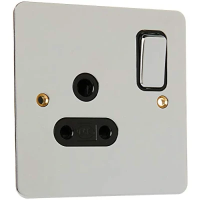 Edge 1 Gang 5 Amp DP Polished Chrome Switch Socket Outlet with Black Insert