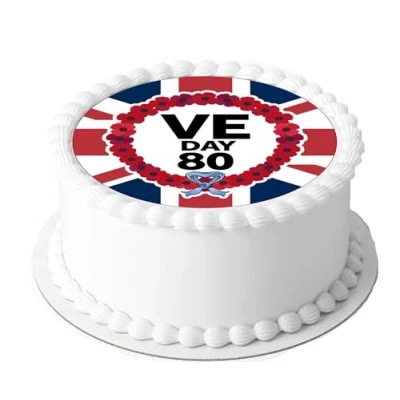 Edible Icing VE Day Victory Europe 80th Anniversary 7.5 inch Circle Cake Topper Perfect for Decorating Larger Cakes Easy to Use