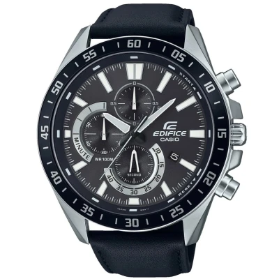 This Casio Edifice Chronograph Watch for Men is the perfect timepiece to wear or to gift. It's Silver 48 mm Round case combined with the comfortable Black Leather watch band will ensure you enjoy this stunning timepiece without any compromise. Operated by a high quality Quartz movement and water resistant to 10 bars, your watch will keep ticking. This fashionable watch with numbers on the bezel is a perfect gift for New Year, birthday,valentine's day and so on -The watch has a calendar function: Date, Stop Watch, Luminous Hands, Luminous Numbers High quality 21 cm length and 23 mm width Black Leather strap with a Buckle Case diameter: 48 mm,case thickness: 11 mm, case colour: Silver and dial colour: Black