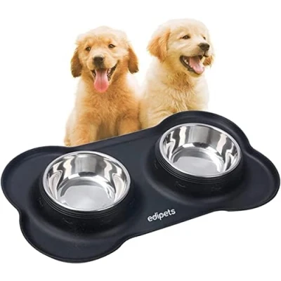 Edipets, Dog Bowls, Cat Feeder, Double Stainless Steel Removable Bowl, Non Slip Silicone Mat, Skid, for Puppies and Adults (M Size 480 gr, Black)