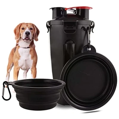 Edipets, Portable Dog Feeder Drinker, Water Bottle, and Food for Pets, 2 in 1, Foldable Travel Bowl (Black)