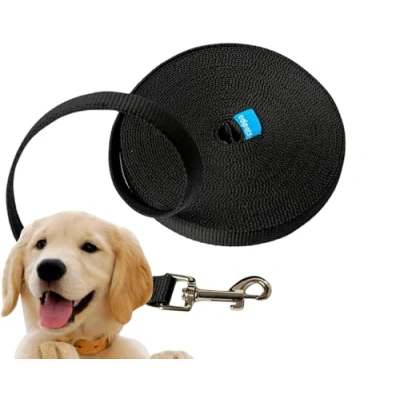 Edipets, Training Lead for Dogs, Dog Lead, Strong Tape, 1.5m / 3m 5m 10m 15m Long, Nylon, Puppy, Small, Medium and Large Red, Black or Blue (10 m, Black)