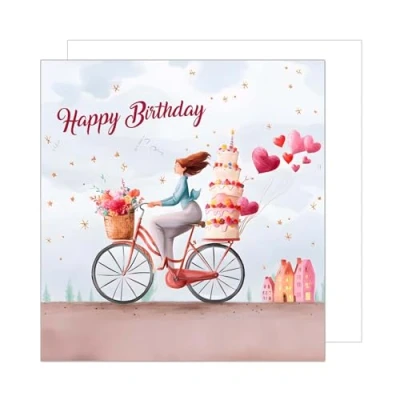 Edition Seidel Premium Square Birthday Card with Envelope. Happy Billet for Man Woman Child Bicycle Cake Balloons (GQ326 SW024)