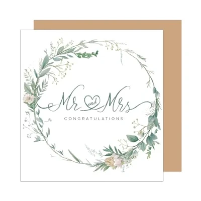 Edition Seidel premium square Wedding Greeting Card with envelope. for Newlyweds Marriage Just Married Flower Wreath Eucalyptus (HQ101 SW024)
