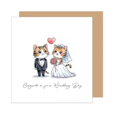 Edition Seidel Premium Square Wedding Greeting Card with Envelope Marriage Just Married Cats Funny Couple (HQ144 SW025)