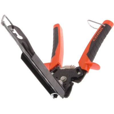 General description The Edma Top Grafer 20/22 Hog Ring Pliers are designed for durability and ease of use. They feature a robust, lightweight construction and come with a magazine cartridge that can hold up to 50 hog rings. The magazine is removable for convenient storage. Technical specifications Model: Edma 0411 Magazine capacity: Up to 50 hog rings Ergonomic handles with patented design Stainless steel coiled spring with anti-rust coating Compatibility and accessories Compatible with Omega 20 and Delta 22 hog rings Usage Features two wire cutters located on the head for added functionality Handles include a closing ring for user safety and easy storage