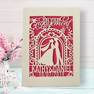 EDSG Engagement Card Personalised Cards for Wedding Laser Paper Cut Congratulations Greeting Gifts Newlyweds with Envelopes Hand Finished in UK(Fuchsia)