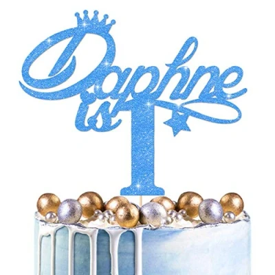 EDSG Personalised 1st Birthday Cake Topper Any Age Name Customized Decor Double Sided Glitter Card Decoration Hand Finished in UK(Blue)
