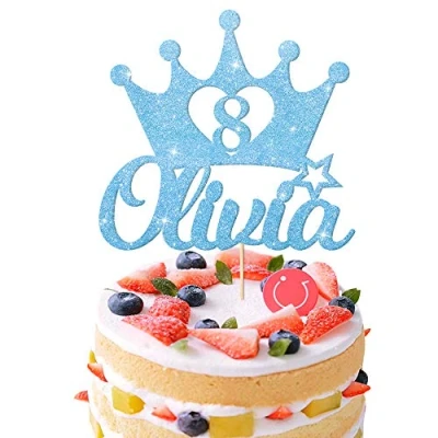 EDSG Personalised Birthday Cake Topper Custom Crown Decoration with Any Name Age 1 3 5 8 Multicolour Glitter Baby Blue