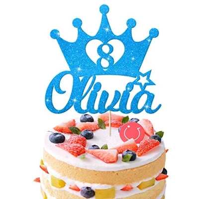EDSG Personalised Birthday Cake Topper Custom Crown Decoration with Any Name Age 1 3 5 8 Multicolour Glitter Blue
