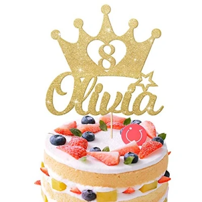 EDSG Personalised Birthday Cake Topper Custom Crown Decoration with Any Name Age 1 3 5 8 Multicolour Glitter Champagne Gold