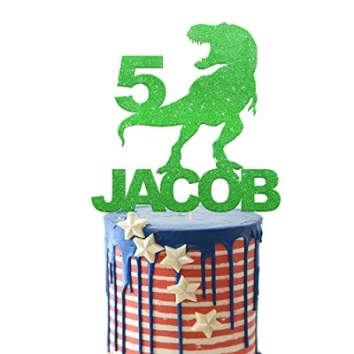 EDSG Personalised Birthday Cake Topper Custom Dragon for Boy with Any Name Age Multicolour Glitter 1st 3th 5th 7th 9th 13th (Green)