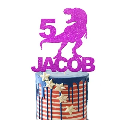 EDSG Personalised Birthday Cake Topper Custom Dragon for Boy with Any Name Age Multicolour Glitter 1st 3th 5th 7th 9th 13th (Purple)