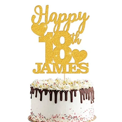 EDSG Personalised Birthday Cake Topper Custom Party Decoration Multicolour Glitter 18th 21st 30th 50th 60th 80th (Gold)