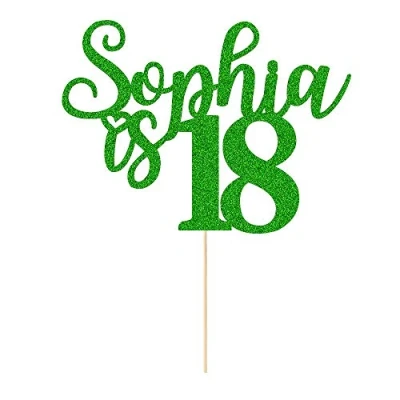 EDSG Personalised Birthday Cake Topper Happy Decorations Double Sided Glitter Card Any Name Age 16th 18th 21st 30th 40th Customized Multicolour Decoration(Green)