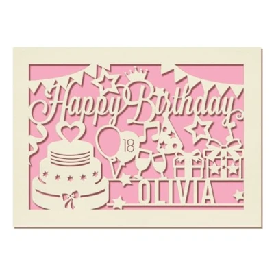 EDSG Personalised Birthday Card Laser Paper Cut Greeting Cards Custom Gift Hand Finished in UK Any Name Age for Mum Adults 30th 40th 50th 60th 70th 80th 100th (Pink)