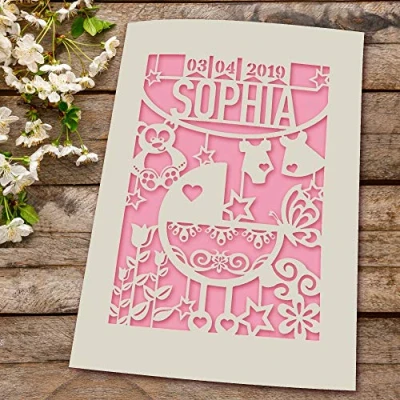 Elite design personalised papercut birthday card, great for a happy birthday greeting Size: A5 (21 * 15 cm), in house technology. Personalised with the happy recipient's name, age or birthday date Laser-cut from a beautiful, excellent quality ivory card Hand-finished with Multicoloured paper inlay for happy birthday greeting handwriting