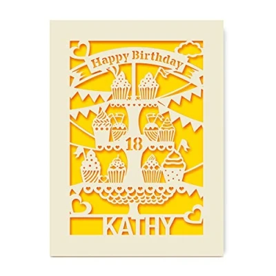 EDSG Personalised Birthday Card Paper Cut Cup Cake with Happy Custom Gift for Kids and Adults Envelope 6th 12th 18th 21st Hand Finished in UK(Gold)