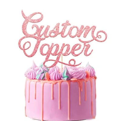 EDSG Personalised Cake Topper Custom Decoration with Any Text Multicolour Glitter Party Retirement Birthday Wedding 13th 16th 18th 21st 30th (Baby Pink)