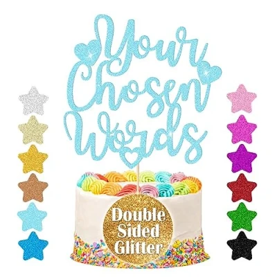 EDSG Personalised Cake Topper Custom Decoration with Any Text Multicolour Glitter Wedding Party 13 15 18 21 25 30 45 60 (Baby Blue)