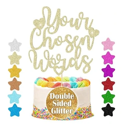 Personalised Cake Topper, Great for Birthday,Party, Retirement, Christening, Christmas... Multicoloured Non-Shed Double Sided Glitter Card. Custom Any Text Cake Decoration. Personalised Party Decoration and Cake Decoration. Size: Appro Width * Heigh= 5" x 4.7" (12.7 x 12cm) (sizes will calculate by the length of your text.) Glitter cake toppers are provided unmounted, so you can make the best decision on the plastic stick height and placement. Click Customize Now to create your Personalised Cake Topper., Manufacturer: EDSG