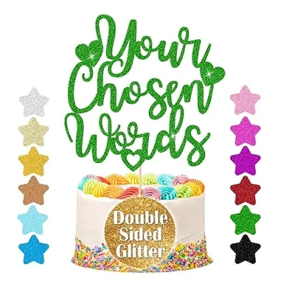EDSG Personalised Cake Topper Custom Decoration with Any Text Multicolour Glitter Wedding Party 13 15 18 21 25 30 45 60 (Green)