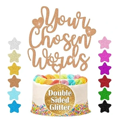 Personalised Cake Topper, Great for Birthday,Party, Retirement, Christening, Christmas... Multicoloured Non-Shed Double Sided Glitter Card. Custom Any Text Cake Decoration. Personalised Party Decoration and Cake Decoration. Size: Appro Width * Heigh= 5" x 4.7" (12.7 x 12cm) (sizes will calculate by the length of your text.) Glitter cake toppers are provided unmounted, so you can make the best decision on the plastic stick height and placement. Click Customize Now to create your Personalised Cake Topper., Manufacturer: EDSG