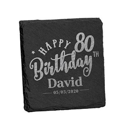 EDSG Personalised Engraved Slate Coaster Custom Birthday Gift for Mum Dad Grandma Grandad Uncle Aunt Friend Cup Mat Mug Table Place Home Decoration (Name and Date)