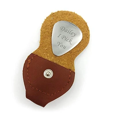 Designed by our professional designers, and our guitar picks are engraved by the most advanced engraved machines. The Personalised Guitar Pick is a great gift for best friend, boyfriend, girlfriend, husband,wife, brother, sister and your loved one. You can leave any information for your personalised details, such as NAME, DATE… The great quality, Silver Stainless Steels are made for our guitar picks. And our guitar picks are always come with a leather cover. Size: the picks' size is 30L*35W*1.2H (mm). Click "Customise Now" and enter the required text. We will lay it out on the product in the perfect way using the design and fonts shown in the pictures.