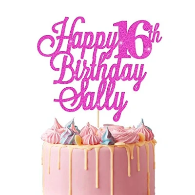 EDSG Personalised Happy Birthday Cake Topper Custom Decoration with Any Name Age Multicolour Glitter 16th 18th 21st 30th 40th 60th Pink