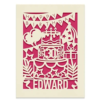 Elite design personalised papercut birthday card, great for any age happy birthday greeting Personalised with the recipient's name and age,in house technology. Laser-cut from a beautiful, excellent quality ivory card, comes with a white envelope Size: A5 (21 * 15 cm) Hand-finished with high quality coloured paper inlay for happy birthday greeting handwriting