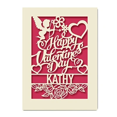 Elite design personalised papercut Happy Valentine's Day card, adorable personalised gift with any names for girlfriend boyfriend wife husband and your loved one... Personalised Papercut ST.Valentine's day Card Paper Cut, in house technology. Size: A5 (21 * 15 cm),Personalised with name. Laser-cut from a beautiful, excellent quality ivory card, comes with a white envelope Hand-finished with high quality coloured paper inlay for happy valentine's day greeting handwriting