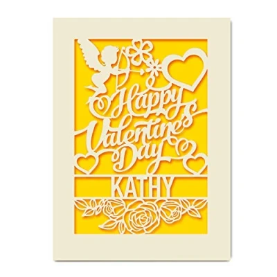 Elite design personalised papercut Happy Valentine's Day card, adorable personalised gift with any names for girlfriend boyfriend wife husband and your loved one... Personalised Papercut ST.Valentine's day Card Paper Cut, in house technology. Size: A5 (21 * 15 cm),Personalised with name. Laser-cut from a beautiful, excellent quality ivory card, comes with a white envelope Hand-finished with high quality coloured paper inlay for happy valentine's day greeting handwriting