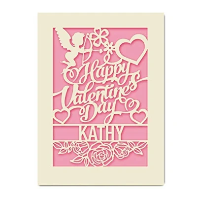 Elite design personalised papercut Happy Valentine's Day card, adorable personalised gift with any names for girlfriend boyfriend wife husband and your loved one... Personalised Papercut ST.Valentine's day Card Paper Cut, in house technology. Size: A5 (21 * 15 cm),Personalised with name. Laser-cut from a beautiful, excellent quality ivory card, comes with a white envelope Hand-finished with high quality coloured paper inlay for happy valentine's day greeting handwriting