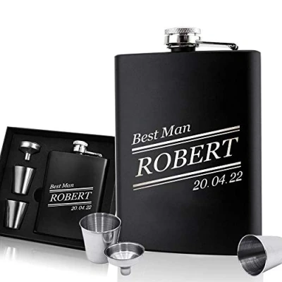 EDSG Personalised Hip Flask Engraved Whisky 6oz Pocket Custom Gift for Best Man Fathers Day Wedding Dad Daddy Father Grandpa Granddad Hand Finished in UK (Name)