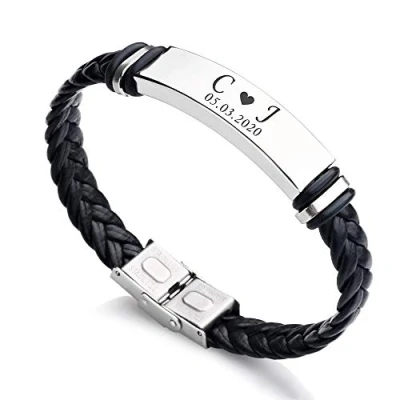 This personalised engraved men's bracelet is a great gift choice for dad, husband, boy friend, brother on any romantic occasion (Birthday, Father's Day, Wedding, Engagement, Valentine’s Day, Anniversary ) Made of high-end black leather, stainless steel clasp and silver metal plate. PACKAGE: Personalised Men's ID bracelet comes with box, great for gift giving. Size:Length 21.5cm, Width 1cm; Metal Plate : 4cm. Choose your favourite style, click Customize Now to create a unique bracelet for him with our unique design.