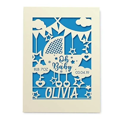 EDSG Personalised New Card Laser Paper Cut Greeting Cards Any Name Date Baby with Weight Custom Gift for Handmade in UK(Blue)