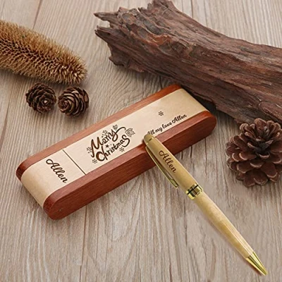 Our Pen is made from natural wood, vintage signing pen from antique pens collection with matching wooden gift case box. The personalised ballpoint pen is a great gift for any occasion, school, office, business, retirement, Christmas, Birthday, Anniversary and Wedding gift, etc. The price includes personalisation (engraving of the pen and engraving of the box). Laser engraving Pen Size:15 * 1.5cm ,Package size:16*5.8*5.3cm Weight:130g Click the Customization and enter the required text. We will lay it out on the product in the perfect way using the design and fonts shown in the pictures.