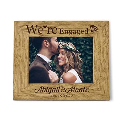 EDSG Personalised Photo Frame Laser Engraved Wooden 7X5 Engagement Picture Gifts for Couple with Any Date Name Text (Landscape, Engaged)