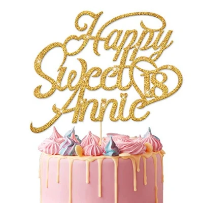 EDSG Personalised Sweet 16th Birthday Customized with Any Age Name 12 16 18 21 30 Decor Cake Topper Double Sided Glitter for Kids Hand Finished in UK(Gold)