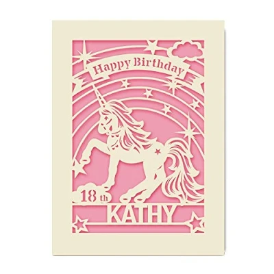 EDSG Personalised Unicorn Birthday Card Paper Cut with Happy Custom Gift Envelope Hand Finished in UK 3th 7th 12th 13th 18th (Pink)