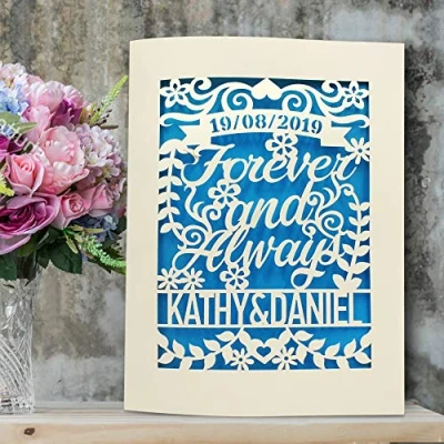EDSG Personalised Wedding Card Laser Cut Anniversary Card, Congratulations Greeting Forever and Always with Envelopes, Custom Gift Hand Finished in UK(Blue)