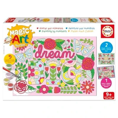 Have fun painting with numbers! This set has been specially designed for boys and girls aged 9 and up Each area of the drawing has a number indicating the colour to be used, this is very simple! A creative activity that promotes concentration, coordination and colour recognition while providing fun to painting. Includes everything you need to get started: sheet with numbered drawings, paints and brushes., Manufacturer: Educa Borras, S.A.U.