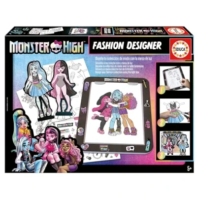 Monster High Fashion Designer styling workshop; possible combinations to infi or outfits and stickers to reposition Draw; color; cut and dress silhouettes with your creations Challenge your Barbie on the podium of the challenge you will find inside the box Create your Barbie designs by clipping them with the light table; colour them and customize them with the stickers, challenge your looks with Barbie figures on the fashion challenge podium Recommended for ages 5 and up, Manufacturer: Educa Borras