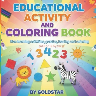 Educational activity and coloring book: Fun learning activities, puzzles, tracing