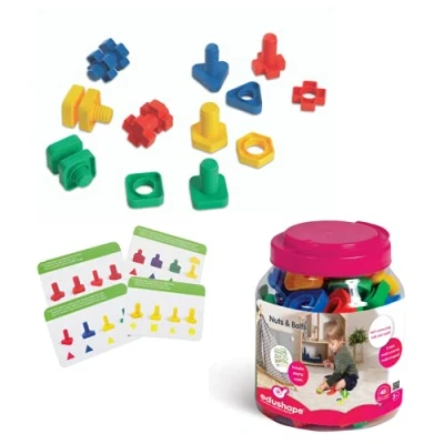Coloured plastic screws and bolts of different sizes, shapes and colours Ideal for developing motor skills, coordination and recognition of shapes and colours From 18 months Contains 8 game cards and instructions to help the child spot, Manufacturer: Edushape