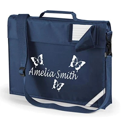Edward Sincalir French Navy Personalised BUTTERFLY Book Bag WITH STRAPS in White Print