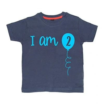 Edward Sinclair 2 3 Years Navy 2nd Birthday T Shirt I Am Two Sky Blue Print