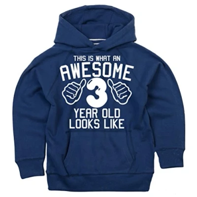 This Hoodie Is A Perfect Birthday Gift For All Those Awesome 3 Year Olds Out There! But Also It Would Be Perfect For Everyday Wear The design is printed onto a great quaity heavy weight hoodie made from 80% Cotton 20% Polyester, which has self coloured cords, a kangaroo pouch pocket and a small hidden opening for the ear phone cord! Machine washable at 40 degrees or less but please turn garment inside out. Do not iron directly onto the design and do not tumbledry